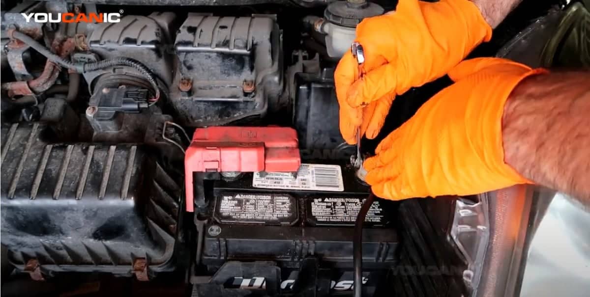 - Remove the positive cable from the battery using the same steps mentioned previously.